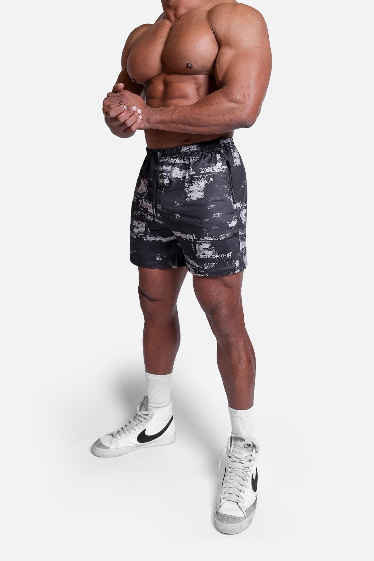 Agile Bodybuilding 4'' Shorts w Zipper Pockets - Gray Graffiti M / Gray