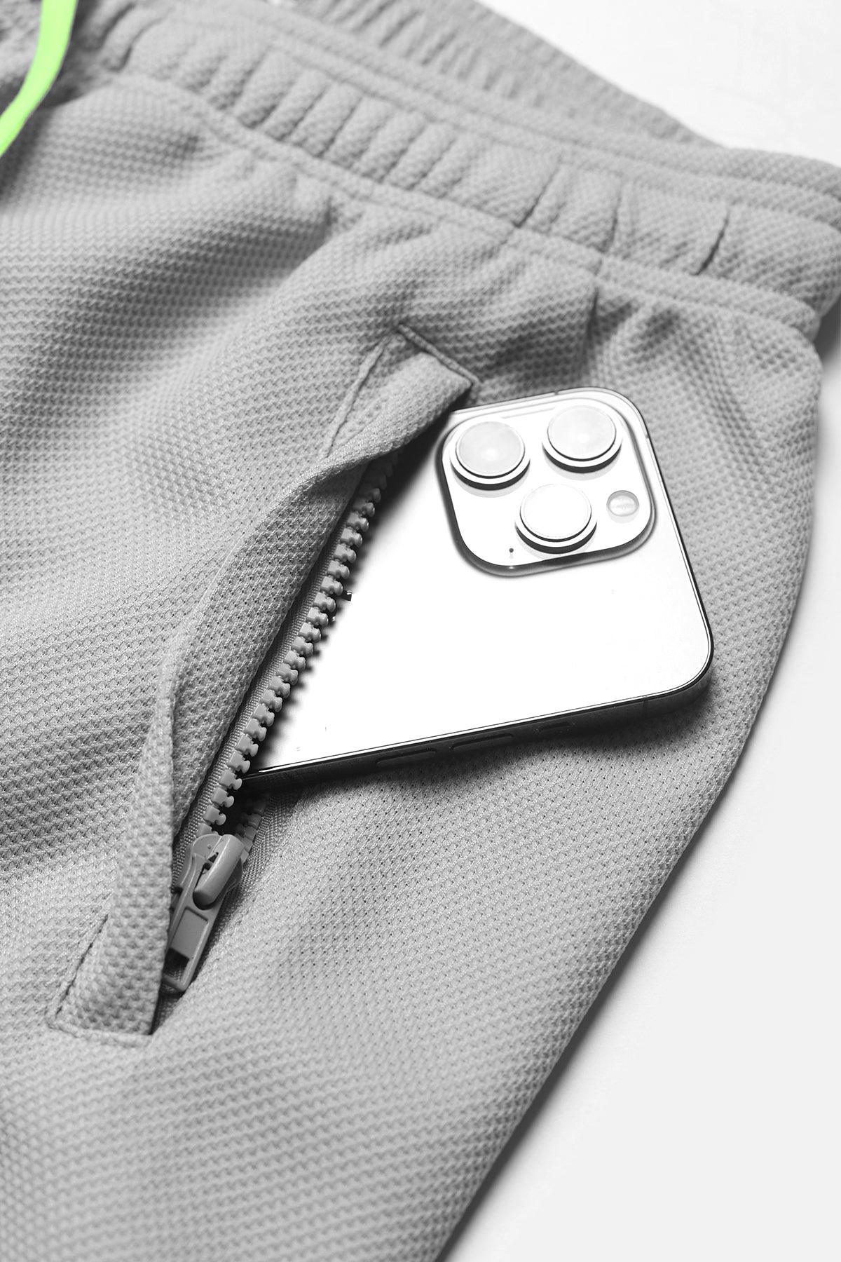 • 4 pockets: 2 phone-sized zipper side pockets, 2 wallet-sized back pockets