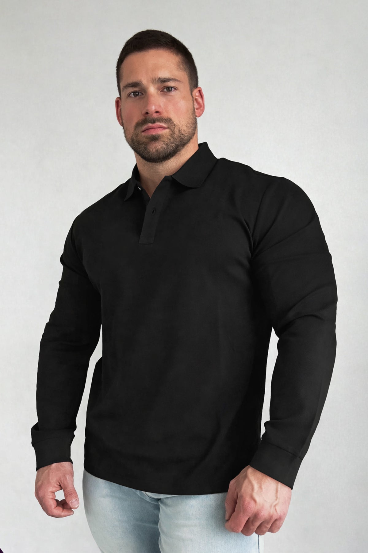 Polo Button-Up Longsleeve - Black