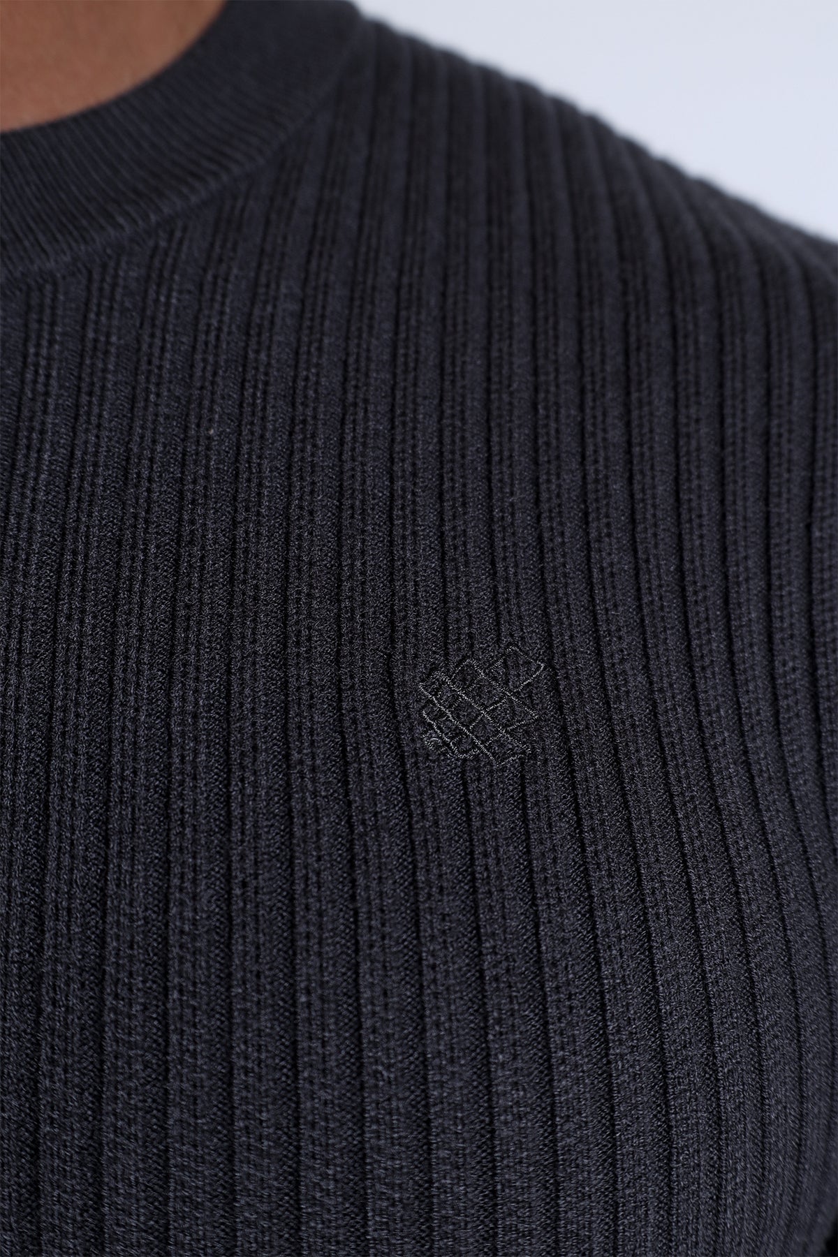 Ribbed Henley Collar Longsleeve  - Dark Gray